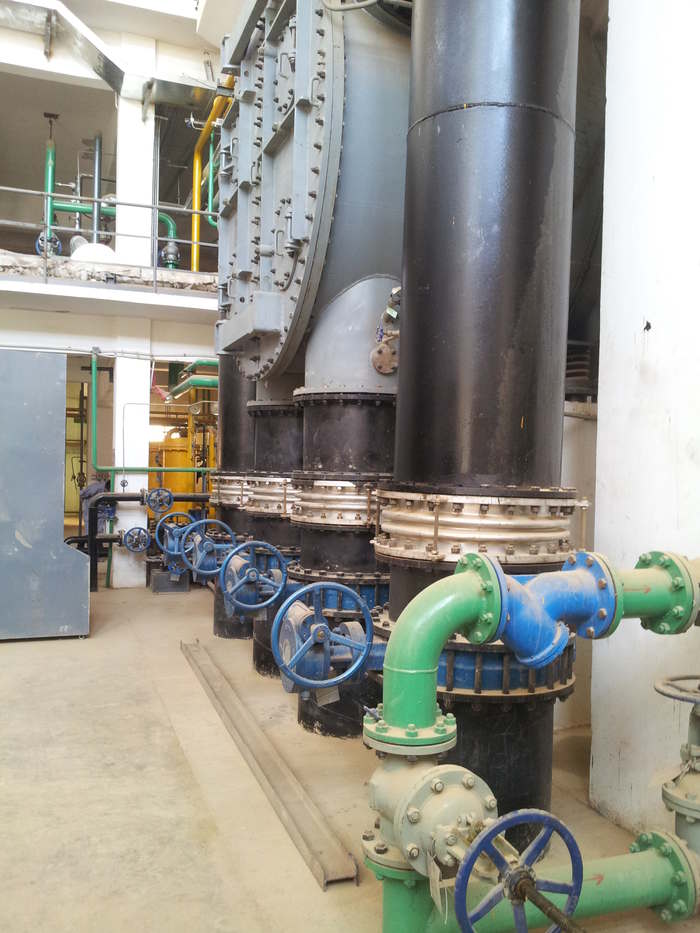 膠球清洗裝置參數: 汽輪機冷凝器循環(huán)水進(jìn)、出口數量:進(jìn)口 2個(gè)、出口2個(gè);循環(huán)水進(jìn)、出口管徑:~DN700;汽輪機冷凝器內冷卻管管徑:Φ25*1;汽輪機冷凝器內冷卻管數量: